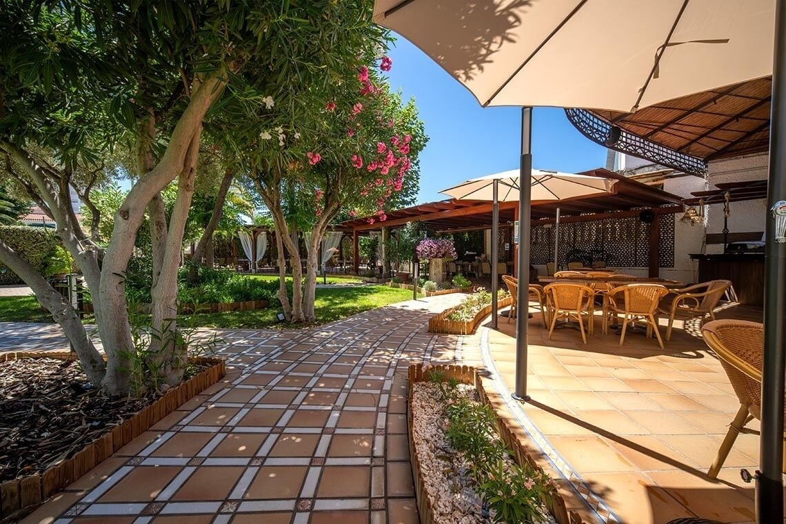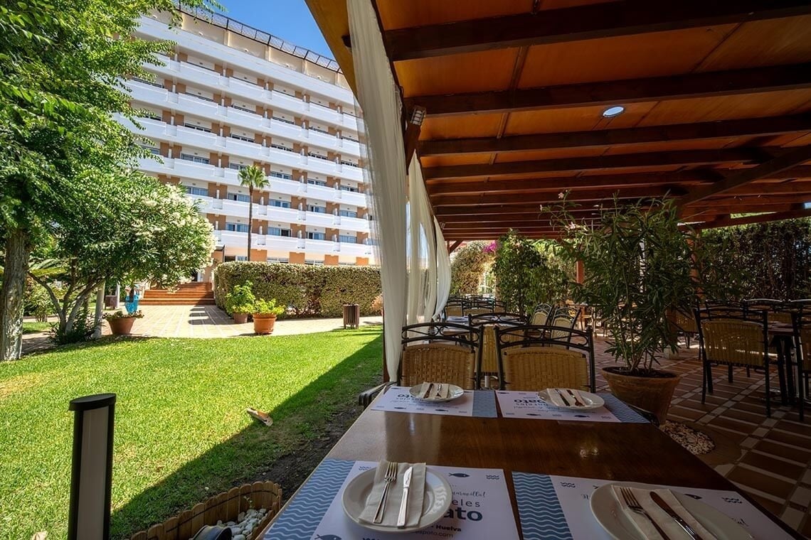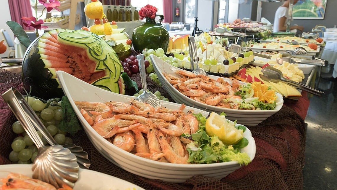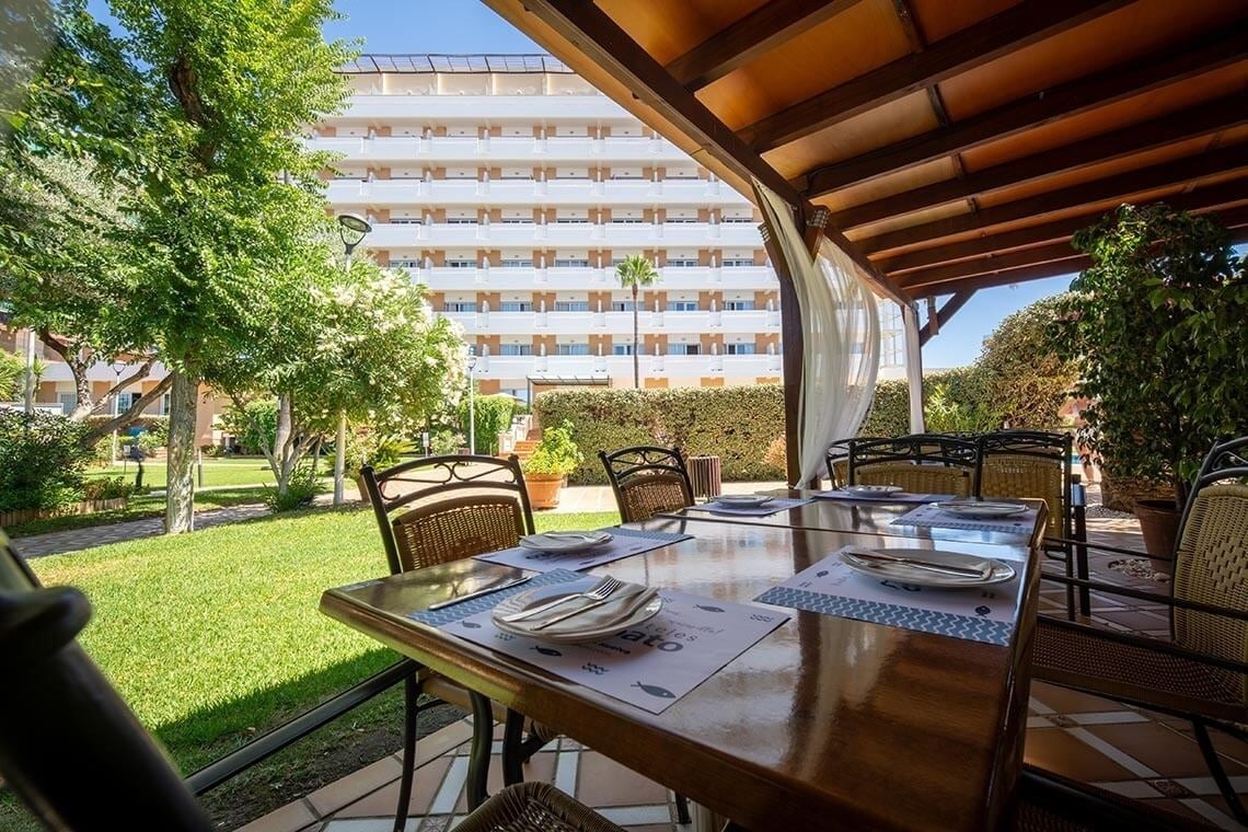 Déjate seducir por los sabores tradicionales de la dieta mediterránea en nuestros exclusivos restaurantes. Disfruta de la auténtica gastronomía en nuestros restaurantes buffet con vistas panorámicas y déjate llevar por la magia del Chiringuito "Bar Jardín", ubicado en nuestro encantador jardín del Pato Amarillo, donde podrás saborear platos que destacan de nuestra carta, como son nuestras exquisitas sardinas plancha, montados de mojama, gambas y paellas por encargo durante el día, y sumérgete en una experiencia única al caer la tarde y por la noche con nuestros deliciosos cócteles, nuestros combinados especiales y una selecta minicarta de comida para acompañarlos.