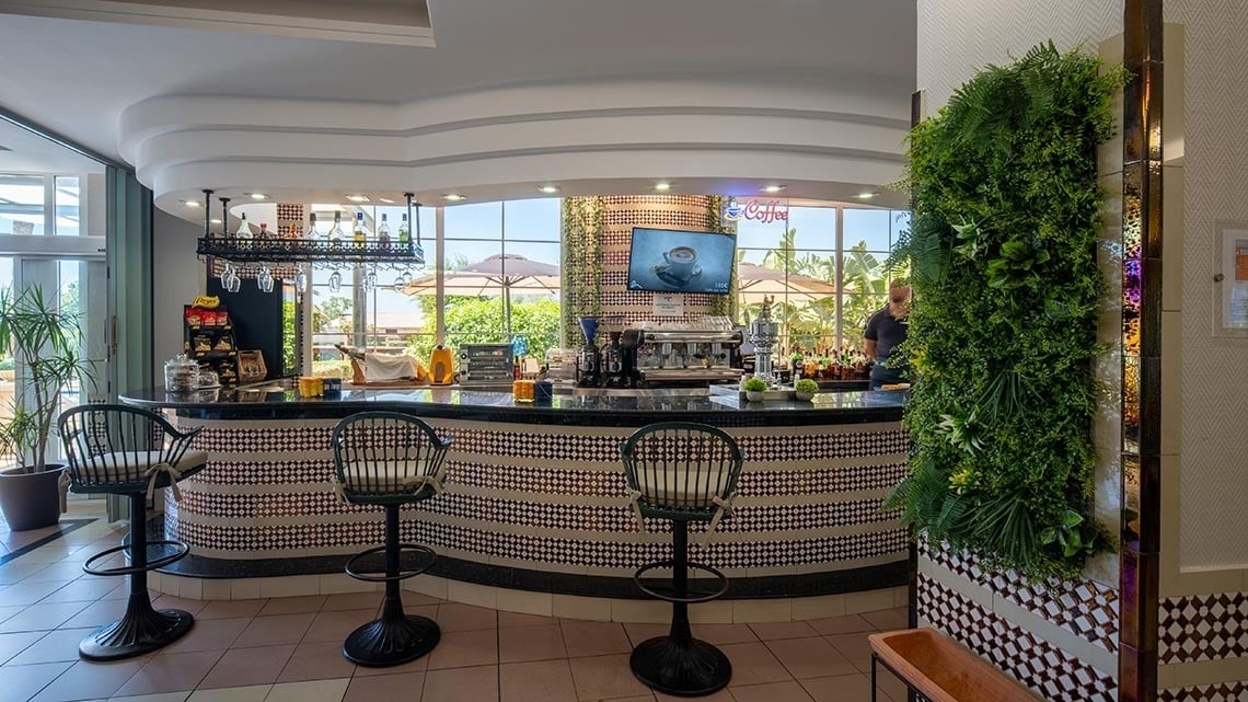 Descubre ambientes únicos en nuestras acogedoras cafeterías, ideales para disfrutar de las suaves temperaturas de la Costa de la Luz onubense durante todo el año, mientras deleitas tus sentidos con refrescantes bebidas y espectáculos en vivo en nuestra temporada estival.